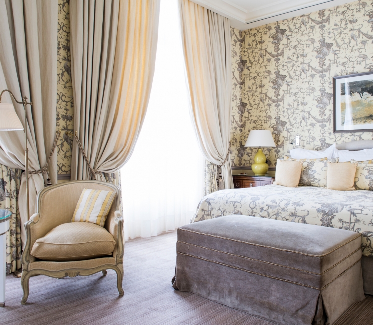 Suaves e luminosas, elas se distinguem por um interior sutilmente decorado, propício ao relaxamento. Cada quarto revela uma identidade singular, contribuindo para criar um local harmonioso e deliciosamente confidencial. Um deles está localizado no Cottage, nas imediações do castelo. Este quarto Deluxe dispõe de uma duche e de um terraço privado, revelando um ambiente íntimo e privilegiado.